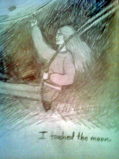 Alright, so I was swinging in my dream, which was weird since I was talking about swinging just two days ago. I don't know why I dreamed about swinging on a rope though. Although I did get to swing on the rope in gym class yesterday. It was awesome too, because the rope was just like that. Or gym teacher helped tie it for us. One of the guys, Dennis, pushed me too hard. I'm telling you, I was screaming. Anyways, in my dream, I was swinging on this rope swing, and I was in the park. I can't remember what the park looked like, but it seemed vaguely familiar. I didn't know why, it just did. I remember wanting to swing higher, and higher, and before I knew it the park disappeared from underneath me, and all I could see was the blue sky and some clouds. Higher and higher I swung, until I was way over the Earth's atmosphere. It felt so blissful, being in space. The moon was right above me, just one more strong swing and I knew I could touch it. I don't know if I touched it or not, that part is very fuzzy. According to the picture I did. The last thing I remember before waking up was the knot becoming loosened, and falling.